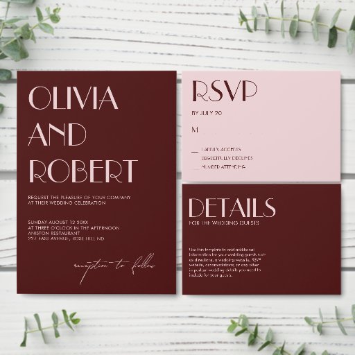 Maroon and pale pink wedding reserved place card