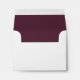 White all purpose note card size envelope, with a rich maroon colour, on the inside. Dark grey text return address on the back is fully customisable and ready to personalise with your information. Lovely finishing touch to your note cards or thank you cards.