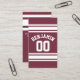 Maroon and White Jersey Stripes Custom Name Number Business Card