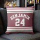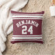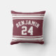 Maroon and White Jersey Stripes Custom Name Number Cushion