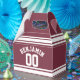 Maroon and White Jersey Stripes Custom Name Number Favour Box