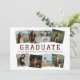 Look at your graduate from an entirely different angle! Invitation design has space for eight square photos on the front, each set at a rakish angle. Template uses vertical photos cropped down to squares. Front shows the word GRADUATE with a line underneath for their name, class year and school. Back includes space for one more photo and text to tell about their school time and/or future plans. Available in school colours of black, red, orange, green, blue, purple, maroon, and burnt orange.