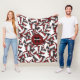This fun team colours volleyball fleece blanket for girls features a pattern of stylised maroon, black and white volleyballs of varying sizes turned every which way on a customisable white background - the volleyballs' maroon and black panels are blended with an artsy, girly floral pattern - personalise with athlete's name and monogram or jersey number - by katz_d_zynes