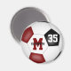 This soccer team colours magnet for boys or girls features the image of a realistic soccer ball, with some of the typically black panels recolored maroon, upon which you can easily customise the athlete's name, monogram & jersey number - by katz_d_zynes