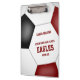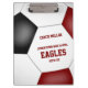 This soccer team colours clipboard for coach or the team's statistician features the image of an abstractly oversized maroon, black and white soccer ball upon which you can customise coach's name plus the school and mascot name and school year/season - by katz_d_zynes