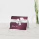 Elegant wedding thank you card, done in a maroon damask design, with elegant graphics of a white satin ribbon and bow, across the middle. White script text reads Thank You. Customise the text inside and on the front to suit your needs. Lovely way to send your thanks after the wedding.