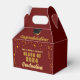 This modern maroon and gold custom senior graduation party favour box features gold streamers decorating around your graduate school and year under Congratulations in cursive script. Great gifts for 2025 graduates.