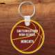 This easy-to-personalise basketball themed keychain features the realistic image of a basketball that has alternating maroon, white and gold recolored panels on the front and a simple maroon basketball shape on the back - easily personalise with player name & jersey number on the front and school or club name & mascot name on the back - by katz_d_zynes