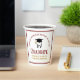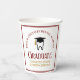 This customisable maroon and gold dental school graduation party paper cup features a tooth wearing a graduation cap for a class of 2025 dentistry graduate. Customise with your graduating year for great personalised dental hygienist, orthodontist, or dentist graduation decor.