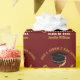 This modern maroon and gold custom senior graduation party wrapping paper features classy typography of your high school or college name for the class of 2025. Customise with your graduating year under the chic handwritten script and black grad cap for great personalised graduate gift wrap.
