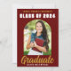 This modern maroon and gold custom senior photo graduate announcement features your high school or college name for the class of 2024. Customise with your name under the chic, bold handwritten script for a great personalised graduation card. Add a 2nd full photograph on the back.