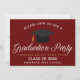 A classy custom graduation party invitation in burgundy red for a high school, college, or university from the class of 2025. Customise this maroon invite with your school name and graduating class under the lovely calligraphy for a great personalised graduate invite card. Monogram in gold text with your name.