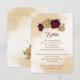Beautiful wedding enclosure card featuring maroon and beige gold flowers with green leaves .