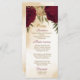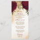 Beautiful fall wedding menu card featuring maroon and beige gold flowers with green leaves .