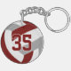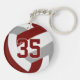 This team colours volleyball themed keychain for girls or boys features a realistic looking maroon, grey and white volleyball upon which you can customise the player's name, jersey number and court position, plus school or club name and mascot name in a varsity letter style font - by katz_d_zynes