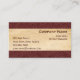 Professional and stylish business card with maroon leather-look top and bottom border on parchment graphic background.