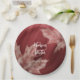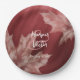 These fall wedding paper plates have a maroon colour theme featuring subtle monochromatic maple leaves accenting a light to dark maroon gradient background - by katz_d_zynes