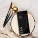 Beautiful Script: The front of the menu features a curated flow of information: