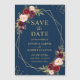 Burgundy Red Blush Floral Navy Blue Save the Date Magnet Magnetic Card