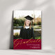 Maroon Red Gold Modern Script | Graduation Photo Announcement