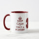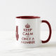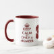 Maroon red keep calm 34th Birthday coffee mug gift. Fun Keep Calm and Carry On meme for twenty-eight year old. Make your own funny age specific cup with custom age number. Cool typographic mugs for men or women. Modern typography template with crown. Custom colour on the inside and handle.