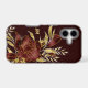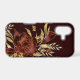 Floral phone cases are always beautiful, but this updated version is a complete stunner! The maroon red rose and leaves are lined in glittery gold. More gold leaves with star shine sparkle surround the rose. Your two letter monogram is in matching gold at the left. Everything is placed on a dark purple red background, which makes the image seem even brighter. Very pretty!