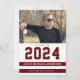 This photo graduation party invitation offers a horizontal photo and is accented with maroon and white stripes that give it a sporty look. The graduating year appears large above the graduate's name.