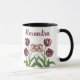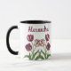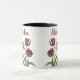 This mug features six maroon and white tulips. This mug will make a wonderful gift for a special girl in your life. The name on the mug is customisable with the name of the recipient.