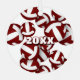 This volleyball themed ornament is printed on the front and back with the image of a cluster of varied size maroon and white volleyballs - customise with the athlete's name on the front and commemorative year on the back - by katz_d_zynes