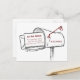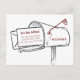 Making a big move? Send your new address out to your friends and family with this great moving announcement. A hand-drawn mailbox shows envelopes with your new address on them with splashes of colour in the text and box flag. Put a picture of your new house or family in your new town on the back. Design comes in red, maroon, green, orange, blue, black and purple. Or change the colours to whatever suits your fancy. Matching products available.