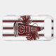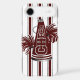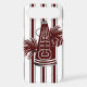 Cheerleader's iPhone 5 case done in maroon, white, and silver tone stripes. Graphics of a maroon and silver tone megaphone and pom poms decorate the middle. Graphic text reads CHEER up the megaphone. Customise to add any text you want. Great gift idea to your favourite spirit leader.