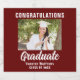 This modern maroon and white custom senior graduate champagne bottle label features your high school or college senior photo for the class of 2025. Customise with your graduating year under the bold handwritten script and grad cap for a great personalised graduation photograph label for your party.