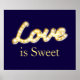 Vintage marquee lights accent this love is sweet poster on a dark blue background, making the perfect decoration for the wedding dessert table. Scroll down to see the coordinating wedding collection.