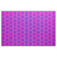 Fabric with Marrakesh Arabesque inspired w/ eggs repeat bright, with ribbon eggs bright art motif elements inspired by the colours and designs of Marrakesh, Morocco, in pink, yellow, bright blue, purple, floral petal medallion, dangling jewels, columns, eggs with a circling ribbon- art by Kristie Hubler.