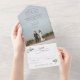 Announce to your friends and family that you got hitched with this All in One Wedding invitation. Each card includes a perforated RSVP card that’s addressed and ready for your guests to send back in the mail. Customise with your information or click "click to customise further" to change the font style, size, colour or background colour.