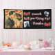 Proposal banner. Will you marry me. Cute retro mid-century couple kissing surrounded by pop art hearts done in a comic book style. Add pictures in the personalise area.