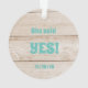 Why not commemorate the day of your marriage proposal with a custom photo ornament? The front has a photo of "Will You Marry Me" written in sand. The reverse side has a weathered wood background and is personalised with "She said Yes!" and the date. You can personalise the back side any way you like, including changing the colour and the font. A custom marriage proposal ornament will bring the memory of that special day for you back year after year as you hang this on your Christmas tree.
