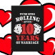 Features 'We're Still Rolling After 10 Years of Marriage' 10th wedding anniversary quote w/ hearts & dice distressed style graphic.