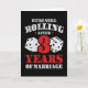 Features 'We're Still Rolling After 3 Years of Marriage' 3rd wedding anniversary quote w/ hearts & dice distressed style graphic.