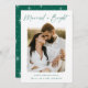 Celebrate your first Christmas as a married couple with our Married and Bright holiday photo card! The card features "Married & Bright" in a green hand-lettered modern script. Your wedding photo is displayed with a white rough edge border. Personalise the front of the card by adding a custom greeting with your names shown below. The card reverses to display a green background with a white sparkling star pattern.