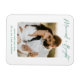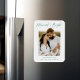 Celebrate your first Christmas as a married couple with our Married and Bright holiday photo magnet! The magnet features "Married & Bright" in a green hand-lettered modern script. Your wedding photo is displayed with a white rough edge border. Personalise the magnet by adding a custom greeting with your names shown below.
