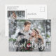 Wedding announcement postcard for the holiday season featuring a hand lettered typography text that says "married and bright". This modern overlay text on your photo also has hand drawn swirls and stars. You can add a 2nd picture and a message on the back of the card.