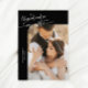 Simple and minimalistic wedding thank you card featuring your wedding photo with a round corner and a text that says "married and so very grateful" in a hand lettered script and the couple's names and the wedding date. Message on the back of the card is editable and another picture can be added as well. This 2-sided thank you card is so timelessly stylish. The background is black.
