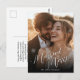 Celebrate your first holiday season as newlyweds with our 'Married and Marry Christmas Photo Postcard '! This elegant and festive design features delicate snowflakes falling around your custom photo, adding a wintery charm to your memories. Personalise it with your favourite wedding or holiday photo, along with your names and the year to create a unique keepsake or thoughtful gift for family and friends. On Back Side of postcard there is Christmas message for Newly Weds. Perfect for spreading holiday cheer while commemorating your first Christmas as a married couple!
