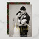 For the newlyweds, send Christmas wishes to your family and friends with this modern and elegant holiday card. Featured on the front is your favourite wedding photo with Married and Merry in real gold foil typography. The reverse side is a festive green red tartan pattern. Personalise with your name