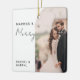 "Married and Merry" Photo wedding Christmas ornament.