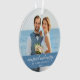 Married and Merry Elegant Calligraphy Script Wedding Photo Blue Ornament with Snowflakes back.
