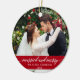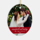 Married and Merry Elegant Calligraphy Script Wedding Photo Red Ornament with Snowflakes back.