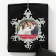 Married and Merry Elegant Calligraphy Script Wedding Photo Red Snowflake Pewter Christmas Ornament