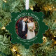 Modern Married & Merry Couple Wedding Photo Holiday Ornament Card - Forest Green Background. This is a greeting card that is also an ornament.